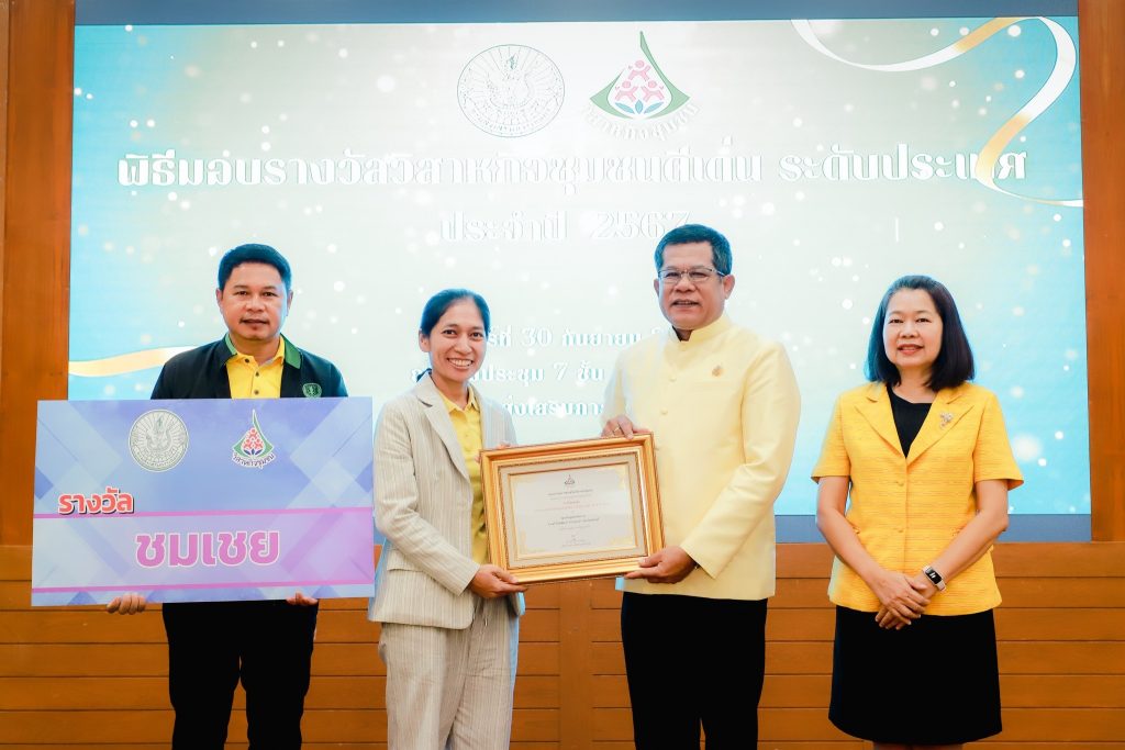 4. รางวัลชมเชย จำนวน 3 รางวัล ได้แก่ 1) วิสาหกิจชุมชนวัยหวาน ตำบลไร่ใหม่พัฒนา อำเภอชะอำ จังหวัดเพชรบุรี มีผลิตภัณฑ์เด่น ได้แก่ ผ้าใยกล้วย ผงโรยข้าว กล้วยหอมทองตากแสงอาทิตย์ และวาฟเฟิลกรอบกล้วยหอมทอง ผลประกอบการ 1,741,972.19 บาท 2) วิสาหกิจชุมชนกลุ่มคลองน้ำเค็มทันใจ ตำบลคลองน้ำเค็ม อำเภอแหลมสิงห์ จังหวัดจันทบุรี มีผลิตภัณฑ์เด่น ได้แก่ เมี่ยงคำกรอบทุเรียน ขนมชีสไส้มังคุดกวน ขนมชีสไส้ทุเรียนหมอนทอง ผลประกอบการ 4,179,990.60 บาท และ 3) วิสาหกิจชุมชนกลุ่มแม่บ้านโคกสว่าง ตำบลคอนฉิม อำเภอแวงใหญ่ จังหวัดขอนแก่น มีผลิตภัณฑ์เด่น ได้แก่ ข้าวแตนแปรรูป ผลประกอบการ 5,008,378.11 บาท