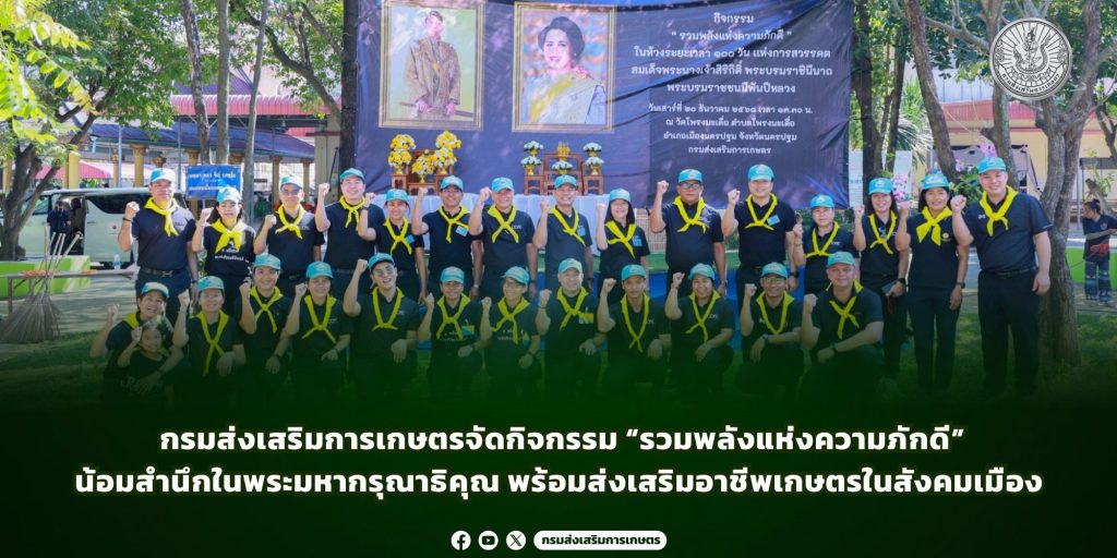นางอัญชลี สุวจิตตานนท์ อธิบดีกรมหม่อนไหม รักษาราชการแทนอธิบดีกรมส่งเสริมการเกษตร เป็นประธานในพิธีเปิดกิจกรรม “รวมพลังแห่งความภักดี” ซึ่งจัดขึ้นในห้วงระยะเวลา 100 วัน แห่งการสวรรคต สมเด็จพระนางเจ้าสิริกิติ์ พระบรมราชินีนาถ พระบรมราชชนนีพันปีหลวง ณ วัดโพรงมะเดื่อ ตำบลโพรงมะเดื่อ อำเภอเมืองนครปฐม จังหวัดนครปฐม