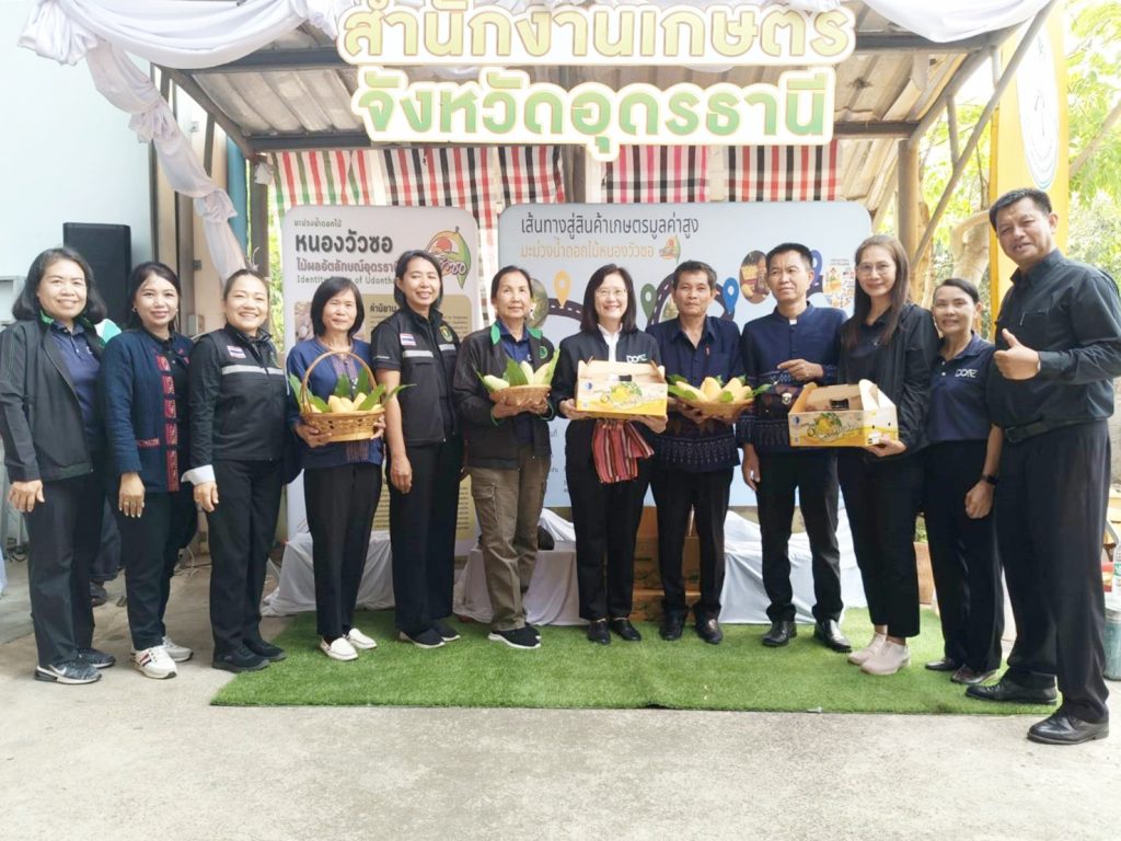 สำหรับจังหวัดอุดรธานีมีมะม่วงน้ำดอกไม้เป็นผลไม้เศรษฐกิจที่มีชื่อเสียงและศักยภาพในการส่งออก มีมาตรฐานเกษตรที่ดีและเหมาะสม (GAP) และมาตรฐานที่ประเทศคู่ค้ากำหนด ซึ่งในปี 2568 เกษตรกรสามารถเก็บเกี่ยวผลผลิตได้เพิ่มขึ้นถึง 217.413 ตัน ก่อให้เกิดอาชีพและสร้างรายได้ให้กับคนในชุมชนเพิ่มขึ้น ซึ่งในปัจจุบันมีการปลูกมะม่วงน้ำดอกไม้ในเขตพื้นที่อำเภอหนองวัวซอ ของจังหวัดอุดรธานี รวมเนื้อที่ประมาณ 5,893 ไร่ ผลผลิตออกจำหน่ายตั้งแต่เดือน พฤศจิกายน – มิถุนายน ของทุกปี โดยแบ่งเป็น 2 ช่วง ได้แก่ ช่วงนอกฤดู เดือนพฤศจิกายน – มีนาคม และช่วงในฤดู เดือนเมษายน – มิถุนายน ซึ่งในการผลิตมะม่วงนี้ เกษตรกรต้องใช้ประสบการณ์ความชำนาญส่วนบุคคล ในการวางแผนการผลิตมะม่วงและการดูแลเพื่อให้ได้ผลผลิตที่ได้มีคุณภาพดี สร้างมูลค่าเพิ่มด้วยอัตลักษณ์และมาตรฐานการรับรอง มีตลาดจำหน่ายในจังหวัด ที่ตลาดเมืองทอง อุดรธานี โดยมีปริมาณการบริโภคในจังหวัดประมาณ 771 ตัน และส่งไปยังตลาดต่างจังหวัด เช่น ตลาดไท จังหวัดปทุมธานี ตลาดต่างประเทศ เป็นต้น นอกจากนี้ยังมีการส่งออกไปยังประเทศเกาหลีใต้ และญี่ปุ่น โดยมีปริมาณการส่งออกสูงถึง 4,496 ตัน