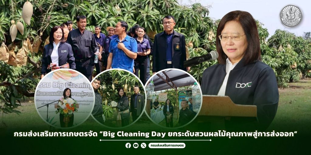 “เพื่อเป็นการสร้างความตระหนักรู้ด้านสุขอนามัยพืชให้กับเกษตรกรผู้ผลิตผลไม้ส่งออก แลกเปลี่ยนข้อคิดเห็นและแนวทางแก้ไขที่เกี่ยวข้องตลอดห่วงโซ่อุปทาน และประชาสัมพันธ์ขับเคลื่อนการดำเนินงานของกรมส่งเสริมการเกษตร กรมส่งเสริมการเกษตรจึงได้จัดกิจกรรม Big Cleaning Day ยกระดับสวนผลไม้คุณภาพสู่การส่งออก ณ กลุ่มแปลงใหญ่มะม่วง ตำบลกุดหมากไฟ อำเภอหนองวัวซอ จังหวัดอุดรธานี เพื่อเป็นจุดเริ่มต้นที่ดี ในการสร้างความเข้มแข็งให้กับภาคเกษตรของจังหวัดอุดรธานี และสร้างความตระหนักต่อการผลิตสินค้าเกษตรอย่างปลอดภัยตามหลัก GAP รวมไปถึงการพัฒนายกระดับมาตรฐานการผลิตผลไม้คุณภาพส่งออกให้เป็นไปตามมาตรฐานของประเทศคู่ค้า และการทำเกษตรที่เท่าทันต่อการเปลี่ยนแปลงสภาพภูมิอากาศ เพื่อสร้างโอกาสในการแข่งขันการส่งออกผลไม้ที่เพิ่มมากขึ้นของประเทศไทย โดยกิจกรรมแบ่งกลุ่มเข้าฐานเรียนรู้ออกเป็น 5 ฐาน ได้แก่ ฐานที่ 1 การผลิตมะม่วงในฤดู นอกฤดู ฐานที่ 2 การเรียนรู้เกี่ยวกับโรคพืชและแมลงศัตรูพืชของมะม่วง ฐานที่ 3 การเรียนรู้เรื่องดินและน้ำ และปุ๋ยสั่งตัด ฐานที่ 4 ระบบการให้น้ำในสวนมะม่วง และฐานที่ 5 การผลิตมะม่วงคุณภาพเพื่อการส่งออก เพื่อให้เกษตรกรที่เข้าร่วมเกิดความรู้ สามารถนำไปใช้ผลิตมะม่วงปลอดภัย มีมาตรฐาน เป็นที่ยอมรับของผู้บริโภคทั้งในและต่างประเทศ” อธิบดีกรมส่งเสริมการเกษตร กล่าว