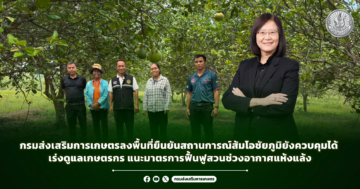 กรมส่งเสริมการเกษตรจะติดตามสถานการณ์อย่างต่อเนื่อง พร้อมบูรณาการความร่วมมือกับหน่วยงานที่เกี่ยวข้อง เพื่อให้ความช่วยเหลือเกษตรกรทั้งด้านองค์ความรู้และปัจจัยการผลิตอย่างเหมาะสมต่อไป