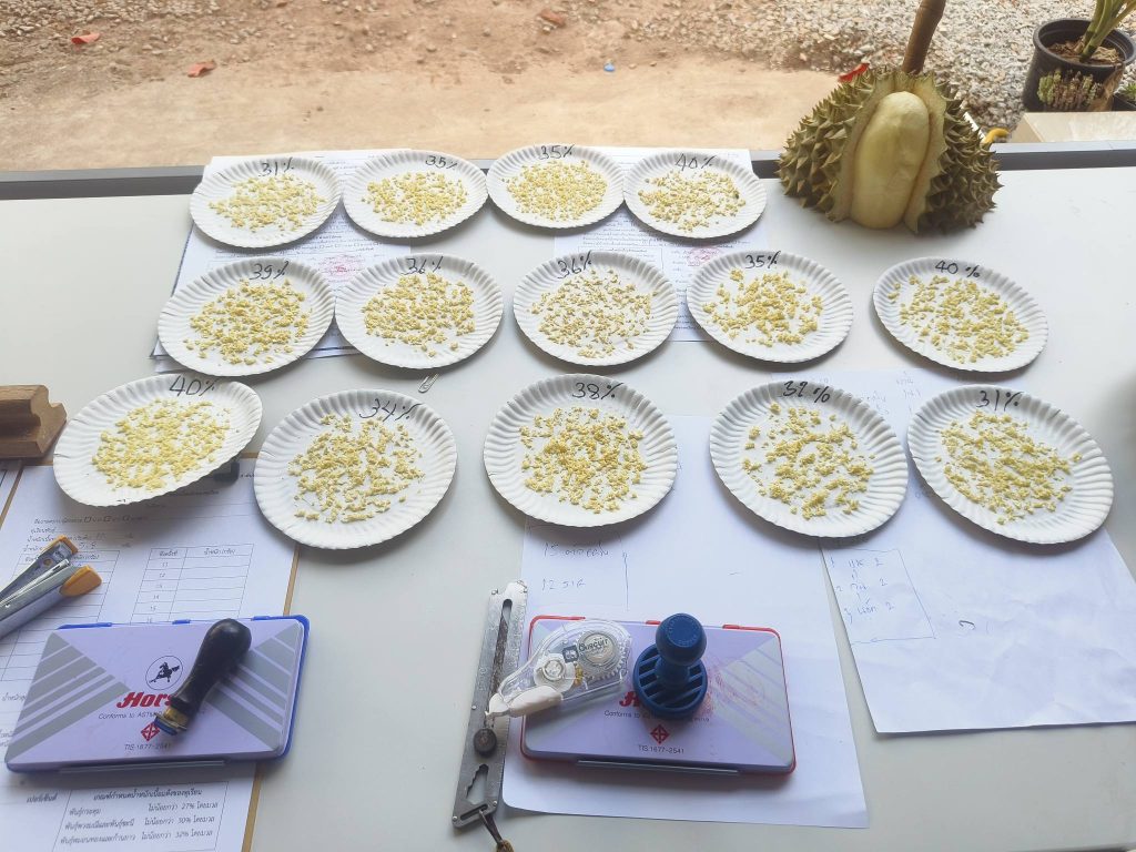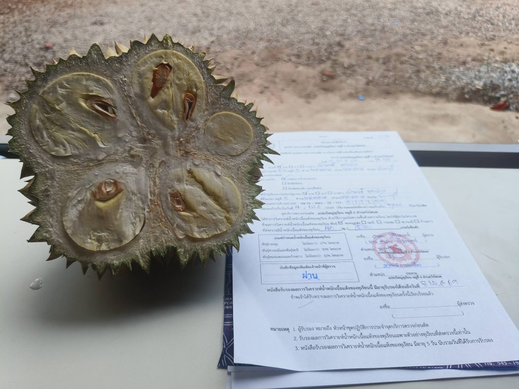 ปัจจุบันมีเกษตรกรเข้ารับบริการ “ตรวจก่อนตัด” อย่างต่อเนื่อง โดยเปิดให้บริการตั้งแต่วันที่ 1 มีนาคม จนสิ้นสุดฤดูกาลผลิต ปี 2569 รวม 53 จุด ได้แก่ จังหวัดจันทบุรี 35 จุด ตราด 10 จุด และระยอง 8 จุด โดยในช่วงวันหยุดสงกรานต์ยังคงมีเกษตรกรเข้ารับบริการต่อเนื่อง ส่งผลให้มีผู้ใช้บริการสะสม 10,371 ราย ตรวจรวมกว่า 13,155 หน่วย พันธุ์ที่เข้าตรวจมากที่สุดคือ หมอนทอง 11,966 หน่วย รองลงมา ได้แก่ กระดุม 600 หน่วย และชะนี 287 หน่วย ทั้งนี้ หากผลตรวจไม่ผ่าน เจ้าหน้าที่จะให้คำแนะนำในการเว้นระยะ เพื่อให้ผลผลิตสะสมอาหารจนได้คุณภาพตามเกณฑ์