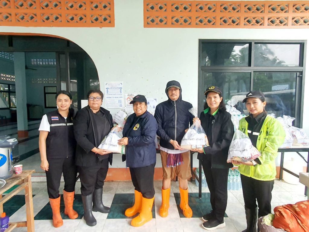 อธิบดีกรมส่งเสริมการเกษตร กล่าวเพิ่มเติมว่า นอกจากนี้ กรมส่งเสริมการเกษตรยังได้สนับสนุนการกระจายเสบียงและถุงยังชีพที่ได้รับการช่วยเหลือจากหลายหน่วยงานที่ร่วมสนับสนุนเครื่องอุปโภคบริโภค เช่น วุ้นเส้นสำเร็จรูปจำนวน 2,160 ถ้วย ข้าวสาร 1,000 กก. น้ำมันพืช 2,400 ขวด บะหมี่กึ่งสำเร็จรูป 700 ซอง เป็นต้น รวมถึงที่เจ้าหน้าที่กรมส่งเสริมการเกษตรร่วมกันบริจาค เพื่อนำไปส่งต่อให้พี่น้องผู้ประสบอุทกภัยในพื้นที่ภาคใต้ โดยจะประสานการดำเนินงานร่วมกับศูนย์ช่วยเหลือจังหวัด กรมป้องกันและบรรเทาสาธารณภัย และองค์กรปกครองส่วนท้องถิ่น ในการใช้งานฐานข้อมูลบัญชีรายชื่อเกษตรกรที่ครอบคลุมทุกพื้นที่ เพื่อให้การส่งต่อเสบียงและถุงยังชีพของกระทรวงเกษตรและสหกรณ์ถึงมือเกษตรกรอย่างรวดเร็วและไม่ตกหล่น