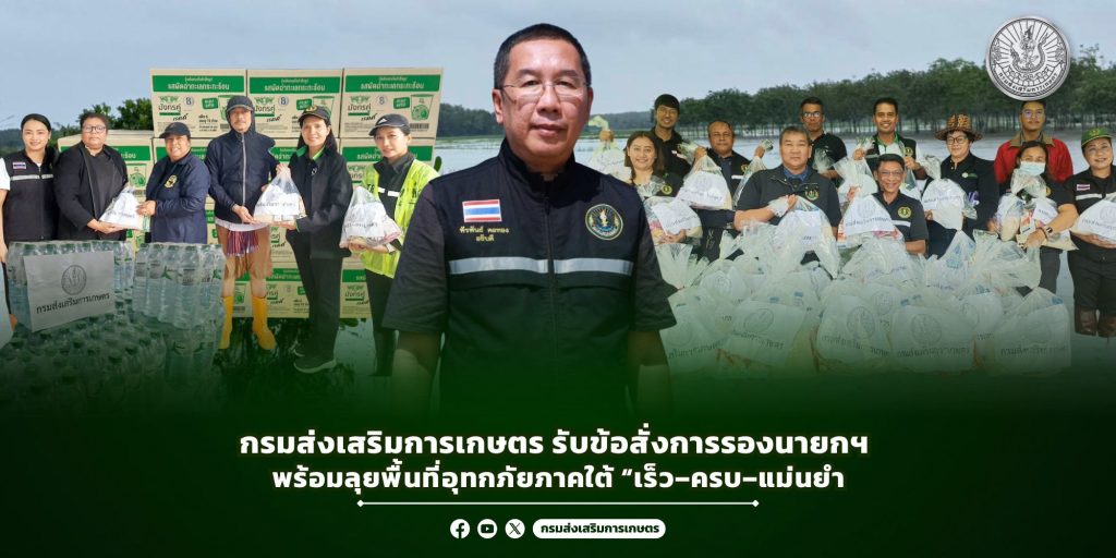 จากสถานการณ์อุทกภัยในหลายจังหวัดภาคใต้ โดยเฉพาะพื้นที่วิกฤติ อำเภอหาดใหญ่ จังหวัดสงขลา และจังหวัดภาคใต้ตอนล่าง ซึ่งสร้างผลกระทบต่อประชาชนและเกษตรกรเป็นวงกว้าง กรมส่งเสริมการเกษตรได้กำหนดแนวทางปฏิบัติเร่งด่วน เพื่อสนับสนุนการดำเนินงานของกระทรวงเกษตรและสหกรณ์ และเพื่อให้ความช่วยเหลือเกษตรกรอย่างเป็นระบบ รวดเร็ว และถูกต้องตามระเบียบ