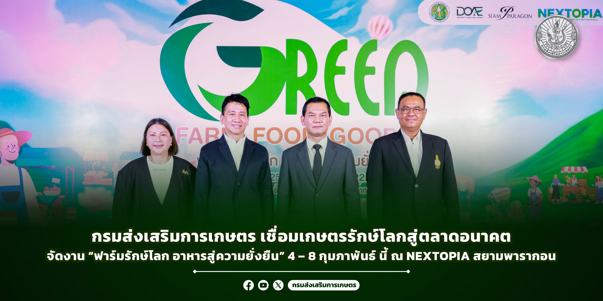 “ฟาร์มรักษ์โลก อาหารสู่ความยั่งยืน (Green Farm → Green Food & Green Goods)” เพื่อเชื่อมโยงการผลิตสินค้าเกษตรรักษ์โลกจากแปลงเกษตรกรไทย สู่ตลาดและผู้บริโภคยุคใหม่ ณ บริเวณ NEXTOPIA ชั้น 5A ศูนย์การค้าสยามพารากอน
