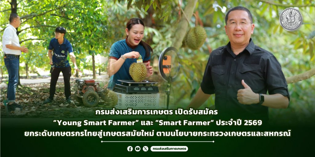 กรมส่งเสริมการเกษตร เปิดรับสมัคร “Young Smart Farmer” และ “Smart Farmer” ประจำปี 2569ยกระดับเกษตรกรไทยสู่เกษตรสมัยใหม่ ตามนโยบายกระทรวงเกษตรและสหกรณ์