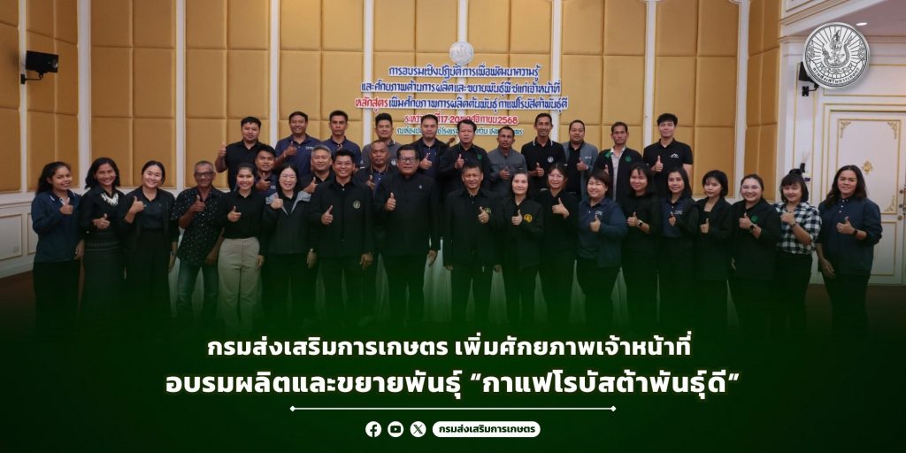กรมส่งเสริมการเกษตร เพิ่มศักยภาพเจ้าหน้าที่ อบรมผลิตและขยายพันธุ์ “กาแฟโรบัสต้าพันธุ์ดี”