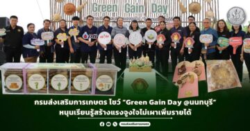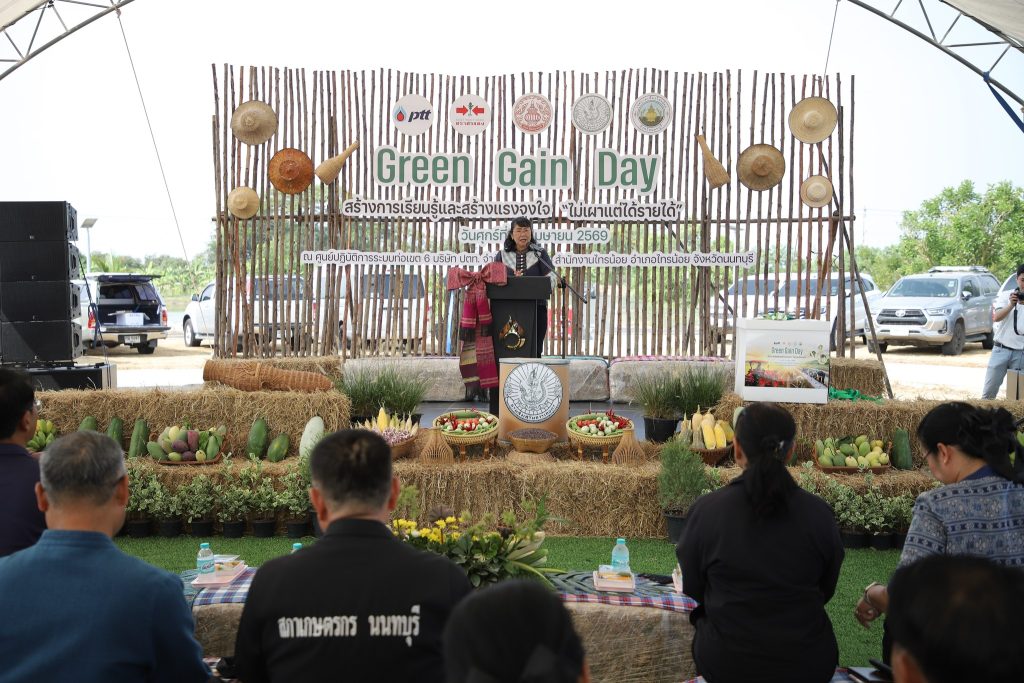 นางธัญธิตา บุญญมณีกุล รองอธิบดีกรมส่งเสริมการเกษตร เป็นประธานเปิดงาน Green Gain Day สร้างการเรียนรู้และสร้างแรงจูงใจ “ไม่เผาแต่ได้รายได้” ภายใต้โครงการส่งเสริมการเกษตรที่เป็นมิตรกับสิ่งแวดล้อม ปี 2569 โดยมีวัตถุประสงค์การจัดงานเพื่อสร้างความรู้ความเข้าใจให้เกษตรกรตระหนักถึงผลกระทบที่จะเกิดขึ้นจากการเผาในพื้นที่เกษตร และนำเสนอทางเลือกในการใช้เทคโนโลยีการเกษตร เพื่อการบริหารจัดการของพื้นที่ และวัสดุเหลือใช้ทางการเกษตรทดแทนการเผา สร้างการมีส่วนร่วมของเกษตรกรในการป้องกันและแก้ไขปัญหาการเผา รวมทั้ง การส่งเสริมให้เกษตรกรปรับเปลี่ยนการปลูกพืชหลังนา ซึ่งเป็นแนวทางที่เหมาะสมและสอดคล้องกับการพัฒนาเกษตรกรรมอย่างยั่งยืน โดยการปลูกพืชหลังนา เช่น พืชตระกูลถั่ว พืชผัก พืชอาหารสัตว์ หรือพืชเศรษฐกิจระยะสั้นที่เหมาะสมกับสภาพพื้นที่และแหล่งน้ำ โดยรองอธิบดีกรมส่งเสริมการเกษตร ได้ร่วมเก็บเกี่ยวผลผลิตจากแปลงปลูกพืชหลังนาและสาธิตการประกอบอาหารจากผลผลิต โดยมีหัวหน้าส่วนราชการ ภาครัฐ ภาคเอกชน และเกษตรกรเข้าร่วมงาน จำนวน 200 คน ณ ศูนย์ปฏิบัติการระบบท่อเขต 6 บริษัท ปตท. จำกัด (มหาชน) สำนักงานไทรน้อย อำเภอไทรน้อย จังหวัดนนทบุรี