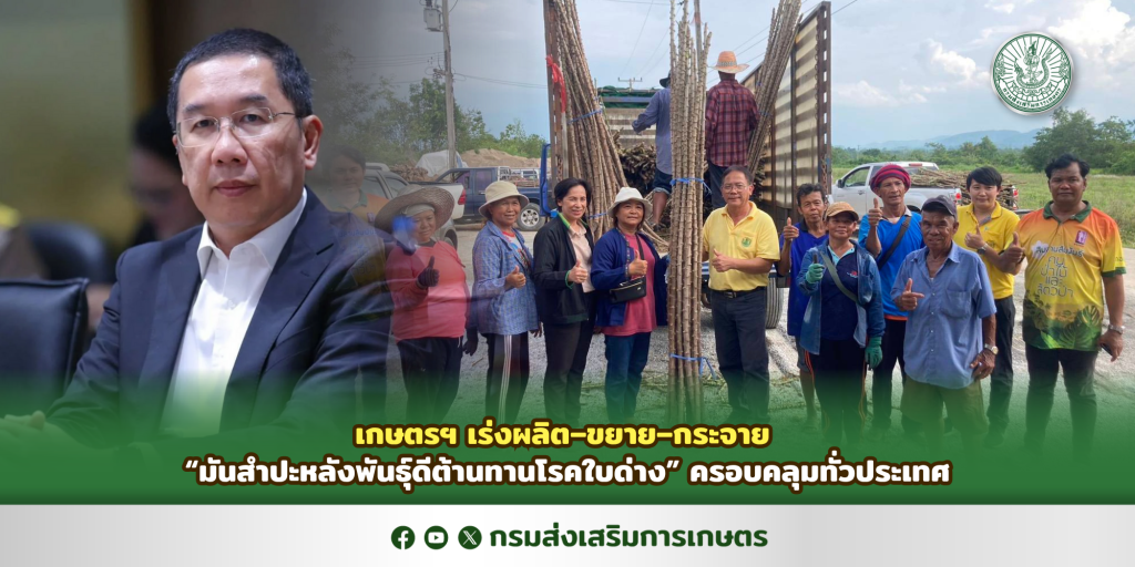 กรมส่งเสริมการเกษตร เดินหน้าขับเคลื่อนแผนเร่งผลิต ขยาย และกระจาย “มันสำปะหลังพันธุ์ดีต้านทานโรคใบด่า…