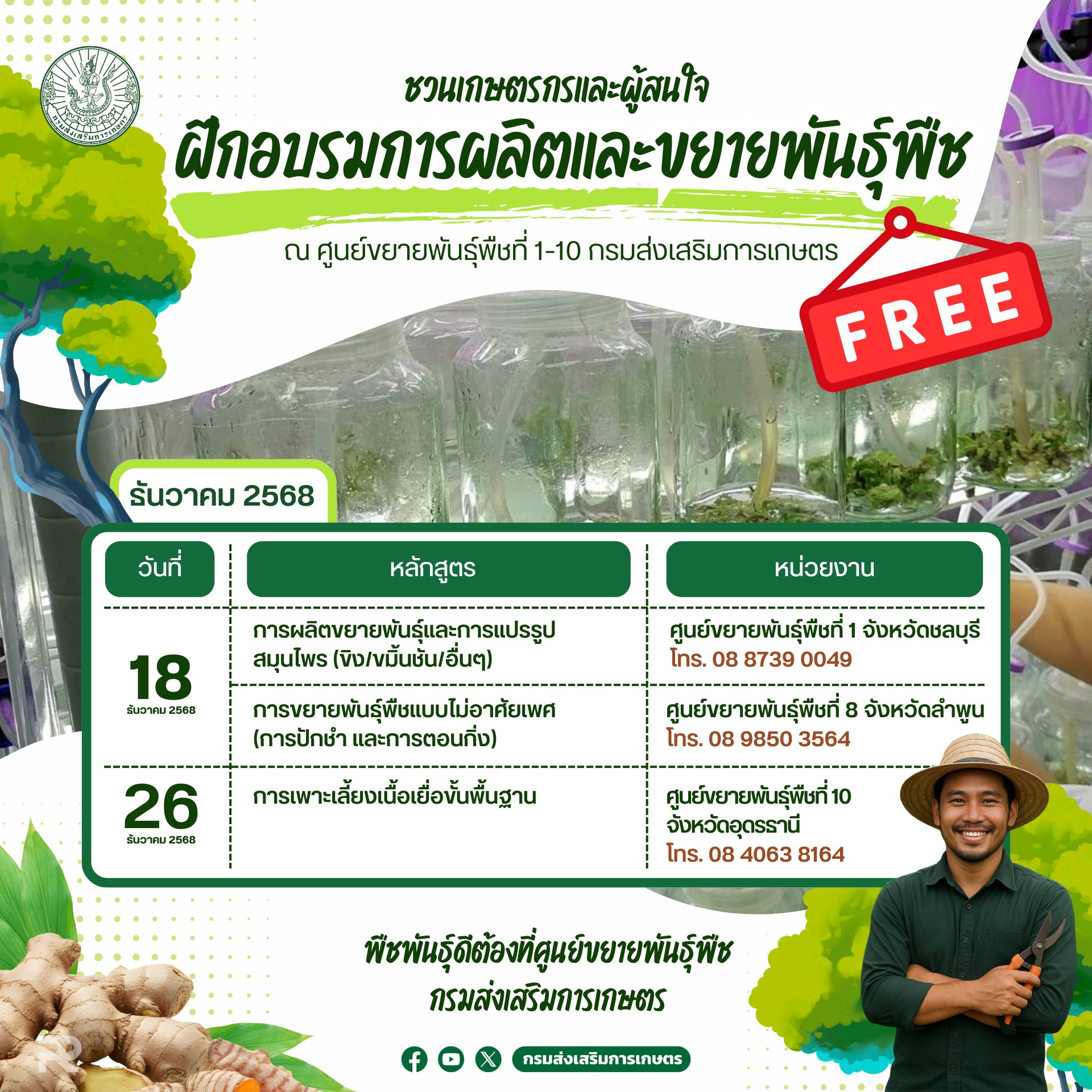 ชวนเกษตรกรและผู้สนใจฝึกอบรมการผลิตและขยายพันธุ์พืช ฟรี !!!