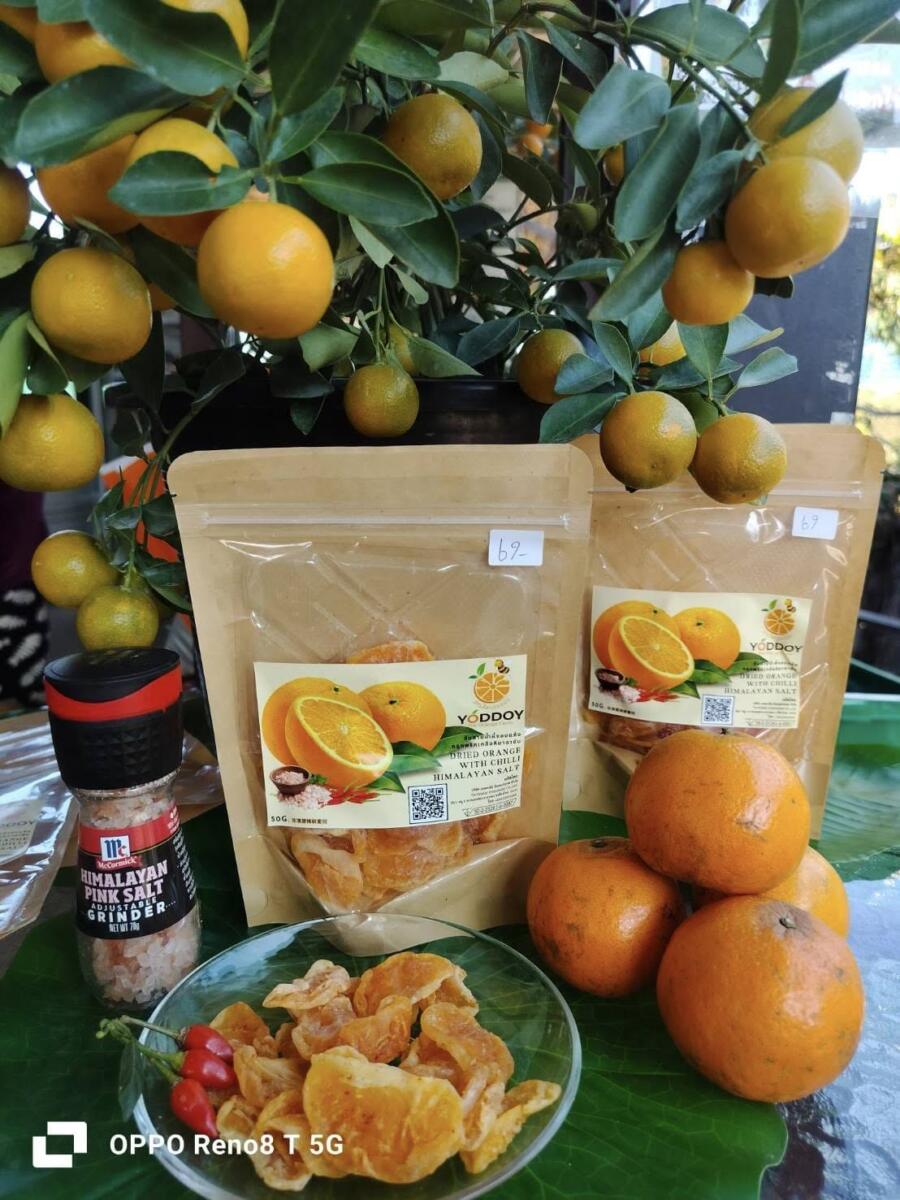 - ผลผลิตเกษตร (ผลสด ) ได้แก่ ส้ม (แก่จัด รสชาตดี สดจากสวน)