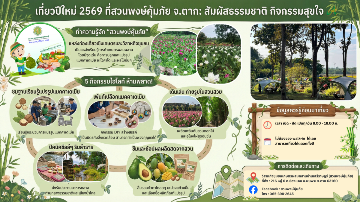แปรรูปแมคคาเดเมีย เดินเล่นในสวนดอกไม้ สวนไผ่ นั่งปิคนิคริมลำธารนั่งระบายสีเปลือกแมคคาเดียเมีย