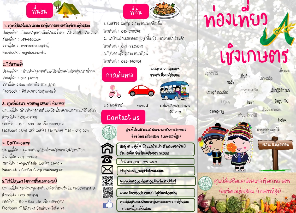 - กิจกรรม ชวนเธอเก็บผักและผลไม้ออร์แกนิก โดยมีผักตามฤดูกาลให้นักท่องเที่ยวเดินและเก็บไป รับประทาน