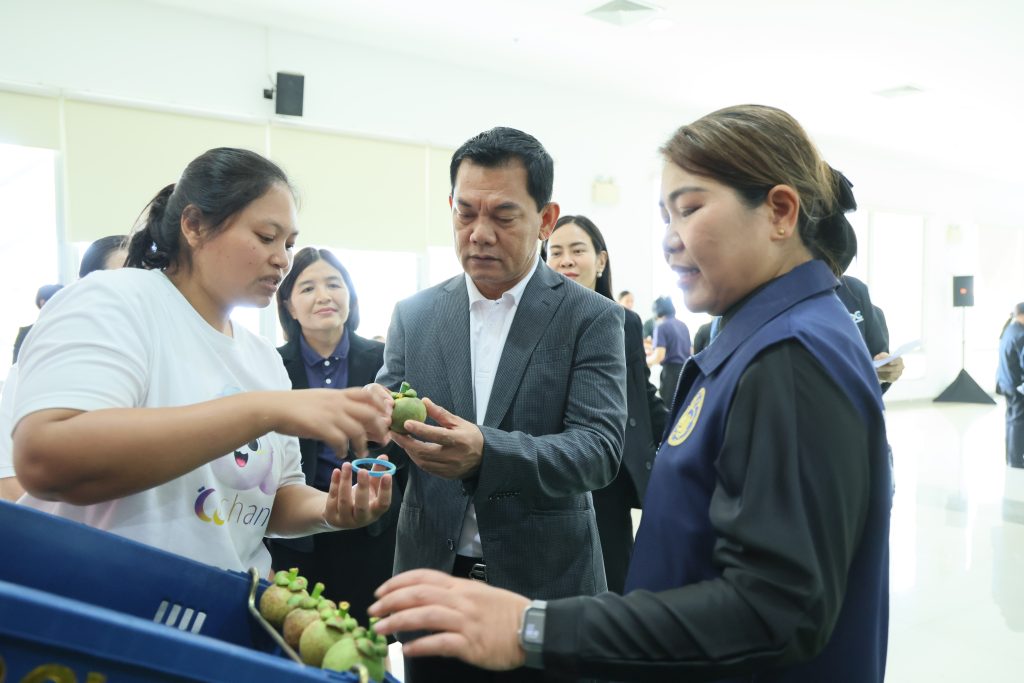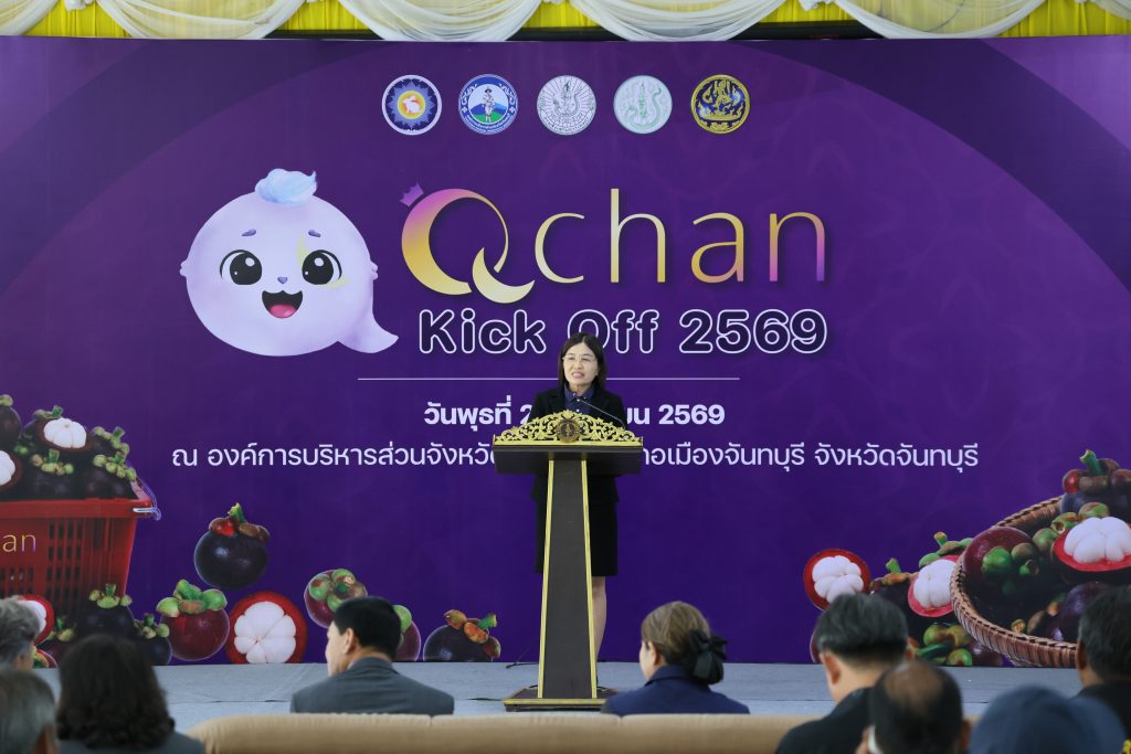 นายวีรศักดิ์ บุญเชิญ รองอธิบดีกรมส่งเสริมการเกษตร กล่าวว่า จังหวัดจันทบุรีเป็นแหล่งผลิตมังคุดที่สำคัญของประเทศ ซึ่งในปี 2569 มีเนื้อที่ยืนต้นมังคุด 108,612 ไร่ ปริมาณผลผลิต 122,327 ตัน ในขณะที่การบริหารจัดการผลผลิตในช่วงฤดูกาลยังมีความท้าทาย โดยเฉพาะมังคุดผิวดำและมังคุดตกไซส์ ที่แม้จะมีคุณภาพการบริโภคที่ดี แต่ยังไม่สามารถสร้างมูลค่าได้อย่างเต็มศักยภาพ กรมส่งเสริมการเกษตร โดยสำนักงานเกษตรจังหวัดจันทบุรี และเครือข่ายวิสาหกิจชุมชนคิวจันท์ หรือ Q Chan จึงได้บูรณาการความร่วมมือกับทุกภาคส่วน พัฒนาและยกระดับผลผลิตดังกล่าวสู่มังคุดไทยมาตรฐาน Q Chan เริ่มต้นจากกลุ่มเกษตรกรที่เข้าร่วมโครงการระบบส่งเสริมเกษตรแบบแปลงใหญ่ เพื่อปรับเพิ่มผลิตภาพการผลิต มีการพัฒนาและยกระดับ รวมตัวเป็นเครือข่ายวิสาหกิจชุมชน บูรณาการความร่วมมือระหว่างภาครัฐ และภาคเอกชน ยกระดับคุณภาพสินค้าเกษตร และเชื่อมโยงการผลิตสู่ตลาดอย่างเป็นระบบ ผ่านกลไก “ตลาดนำการผลิต บูรณาการเครือข่ายระดับจังหวัด และบริหารจัดการผลผลิตอย่างครบวงจร” ให้เกิดการระบายผลผลิตอย่างเป็นรูปธรรม และยกระดับมังคุดไทยมาตรฐาน Q Chan สู่การเป็นสินค้าที่มีมาตรฐาน และได้รับการยอมรับในวงกว้าง