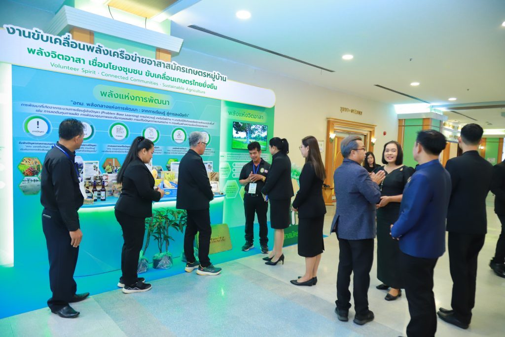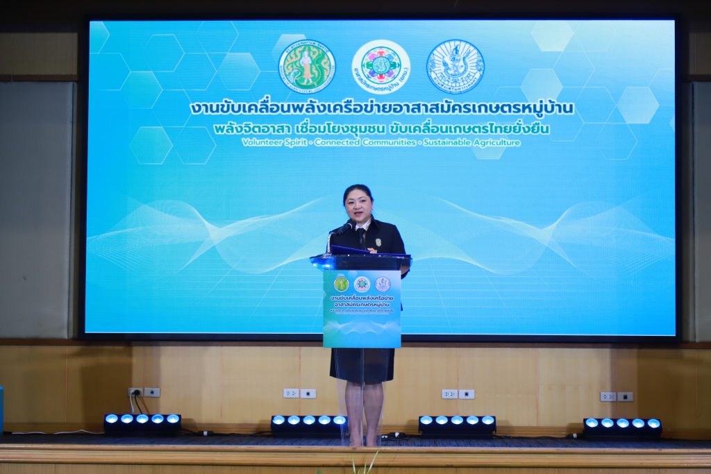 นางอัญชลี สุวจิตตานนท์ อธิบดีกรมส่งเสริมการเกษตร กล่าวเพิ่มเติมว่า กรมส่งเสริมการเกษตรจัดงานขับเคลื่อนพลังเครือข่ายอาสาสมัครเกษตรหมู่บ้าน เพื่อพัฒนาศักยภาพอาสาสมัครเกษตรให้เป็นเครือข่ายสนับสนุนการทำงานของเจ้าหน้าที่ส่งเสริมการเกษตรในระดับพื้นที่อย่างมีประสิทธิภาพ พร้อมยกระดับบทบาท อกม. ให้เป็นกลไกสำคัญในการเชื่อมโยงการทำงานระหว่างภาครัฐกับเกษตรกรในชุมชน ภายในงานมีการสรุปแนวทางการทำงานแบบ “บูรณาการอาสาสมัครเกษตร” เพื่อให้ อกม. 1 คน สามารถประสานการทำงานร่วมกับอาสาสมัครเกษตรด้านต่าง ๆ ได้อย่างเป็นระบบ ลดภาระงานของเจ้าหน้าที่ เพิ่มความรวดเร็วในการให้บริการ และตอบสนองต่อปัญหาและความต้องการของเกษตรกรได้อย่างตรงจุดมากยิ่งขึ้น