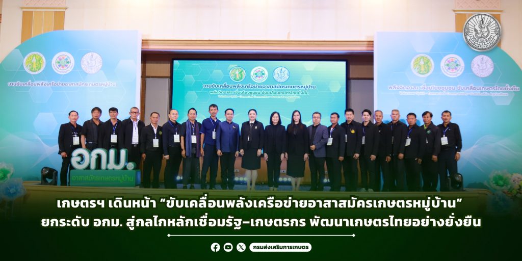 การขับเคลื่อนพลังเครือข่ายอาสาสมัครเกษตรหมู่บ้านในครั้งนี้ ถือเป็นอีกก้าวสำคัญของกรมส่งเสริมการเกษตรในการพัฒนาระบบส่งเสริมการเกษตรเชิงรุก สร้างเครือข่ายภาคประชาชนที่เข้มแข็ง และยกระดับการพัฒนาเกษตรไทยให้เท่าทันการเปลี่ยนแปลงอย่างยั่งยืน.-