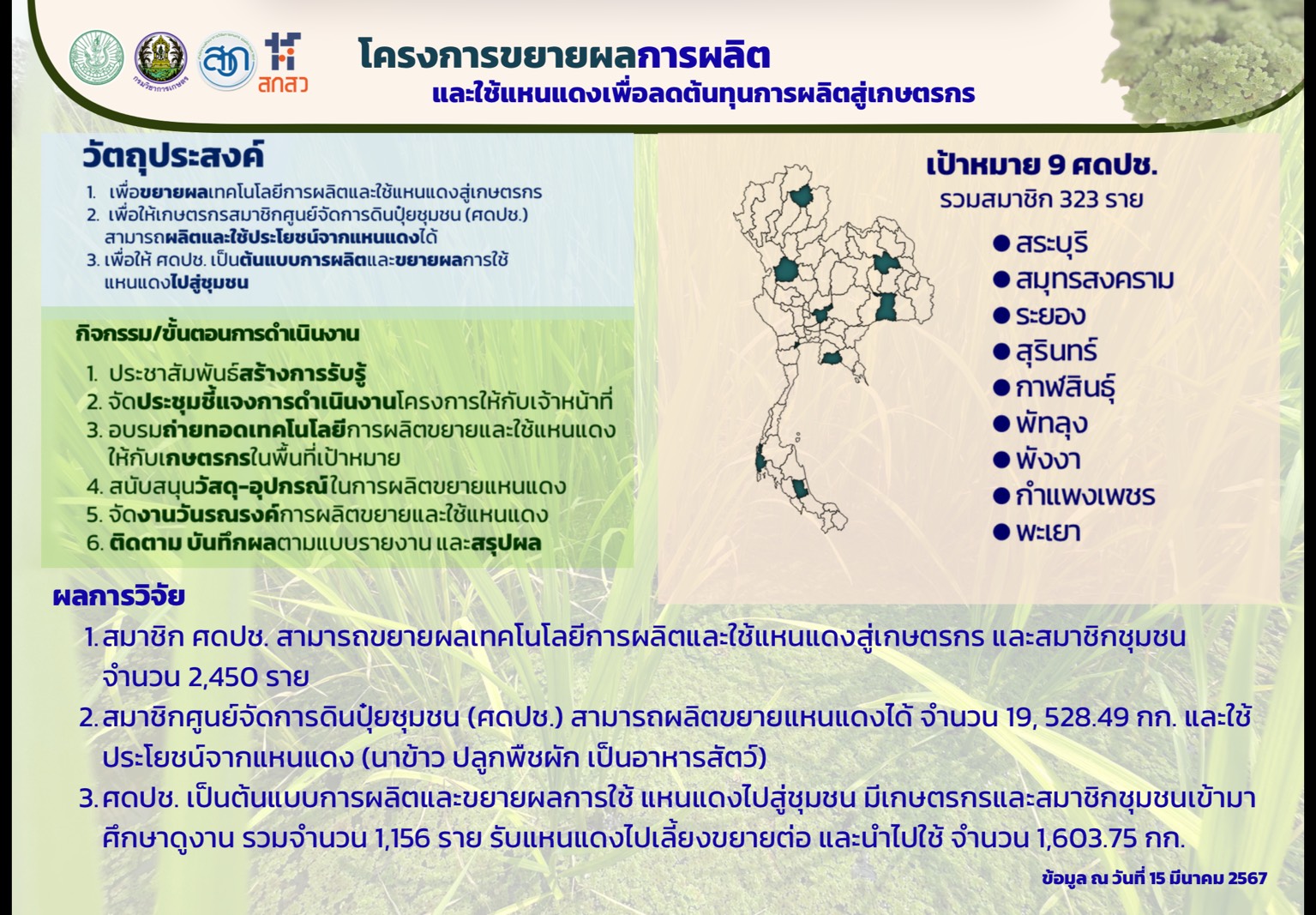 3.โมเดลขยายผลการผลิตและใช้แหนแดงเพื่อลดต้นทุนการผลิตข้าวจาก ศดปช.สู่ชุมชน