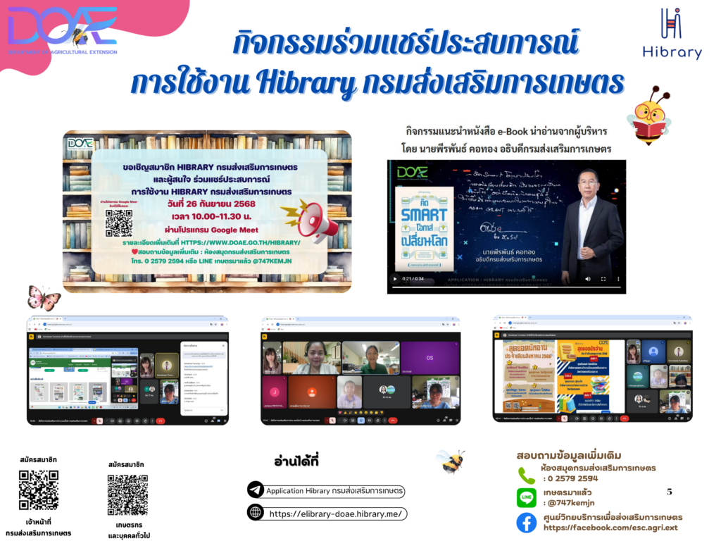 ขอเชิญสมาชิก Hibrary กรมส่งเสริมการเกษตร และผู้สนใจร่วมแชร์ประสบการณ์การใช้งาน Hibrary กรมส่งเสริมการเกษตร