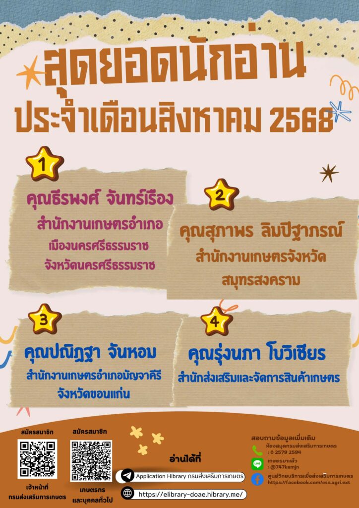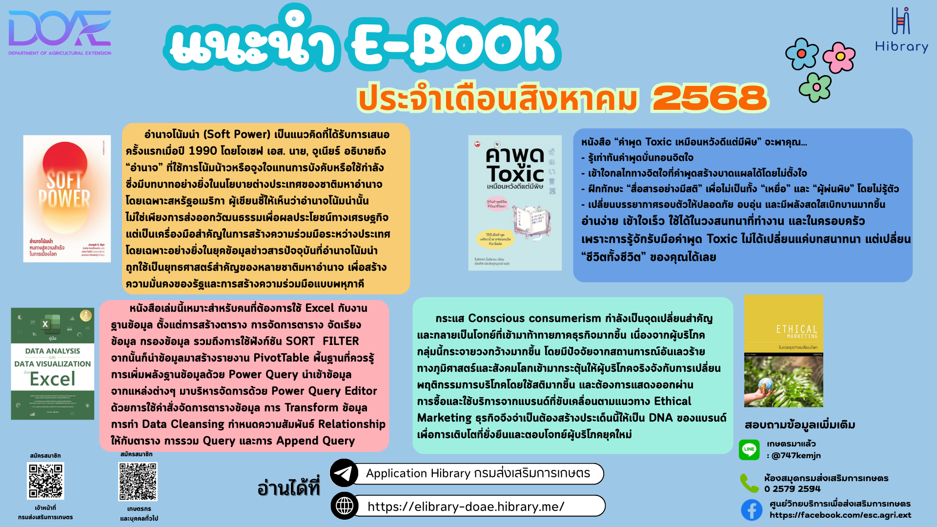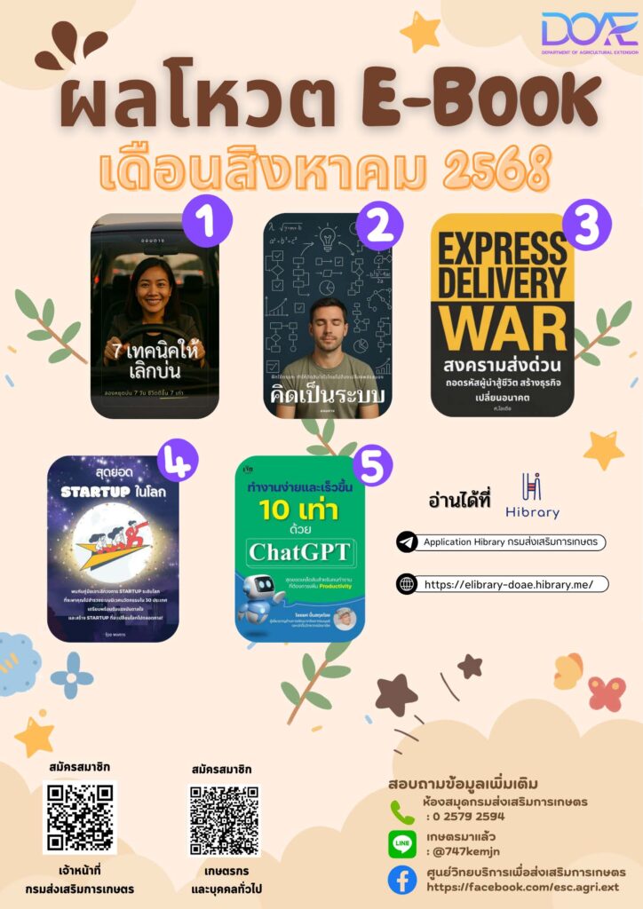 ขอเชิญสมาชิก Hibrary กรมส่งเสริมการเกษตร ร่วมโหวต e-Book ที่อยากอ่าน ประจำเดือนสิงหาคม 2568 ระหว่างวันที่ 20-26 สิงหาคม 2568