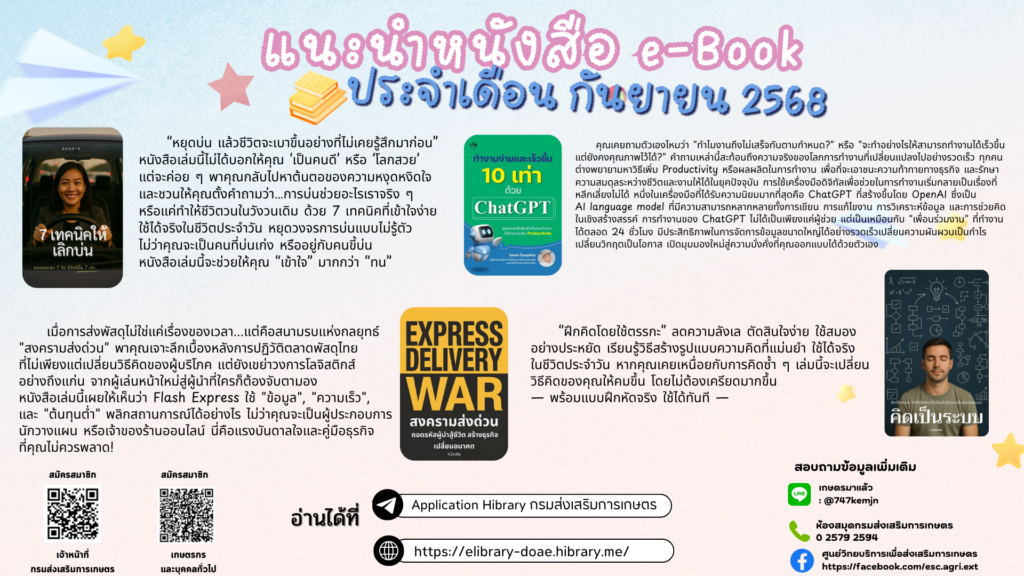 ขอเชิญสมาชิก Hibrary กรมส่งเสริมการเกษตร ร่วมโหวต e-Book ประจำเดือนมิถุนายน 2568